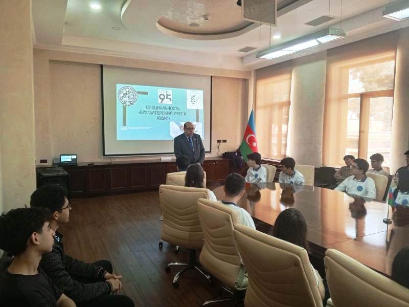 UNEC Rus İqtisad Məktəbinin (RİM) nümayəndələri direktor müavini Anar Eyyubov və “Tətbiqi iqtisadiyyat” kafedrasının dosenti Rauf Salayev abituriyentlərlə iş proqramı çərçivəsində 6 nömrəli məktəb-liseydə abituiyentlərlə görüş keçirib.