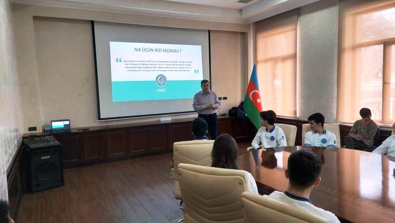 Görüş zamanı abituriyentlərə UNEC-in missiyası və əsas dəyərləri, beynəlxalq reytinqlərdə mövqeyi və əldə etdiyi nailiyyətlər, tərəfdaşlıq etdiyi ali təhsil müəssisələri, mövcud ixtisaslar barədə ətraflı məlumat verilib. Eyni zamanda UNEC-də tətbiq olunan innovativ idarəetmə sistemi, tədris və imtahan prosesinin təşkili, tələbə təqaüdləri, mübadilə və beynəlxalq ikili diplom proqramları, ,Kitabxana-İnformasiya Mərkəzinin fəaliyyəti, eləcə də universitetdə fəaliyyət göstərən tələbə təşkilatları haqqında təqdimat aparılıb.