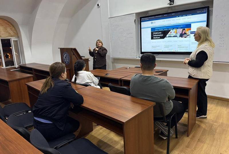 Təlim zamanı kitabxananın davamlı yenilənən və təkmilləşdirilən xidmətləri, təşkil edilən tədbirlər, kitab təqdimatları və layihələr barədə də geniş məlumat verilib, müəllim və magistrantları maraqlandıran suallar cavablandırılıb.