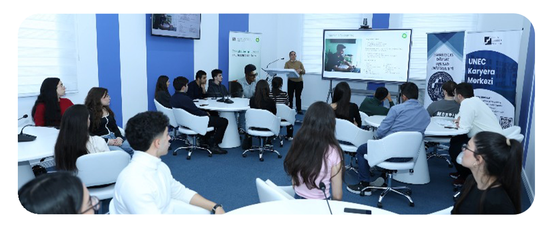 Центр карьеры UNEC был создан 26 ноября 2008 года. В рамках своих полномочий Центр карьеры оказывает помощь обучающимся и выпускникам на всех уровнях высшего образования в развитии карьеры и регулировании занятости. Центр является совместным проектом UNEC, Министерства молодежи и спорта Азербайджанской Республики и Международной организации труда. Мы помогаем нашим студентам достигать личных и академических целей, оказываем им моральную и духовную поддержку на протяжении всего учебного процесса. Как для университета, это является важной задачей и для нас. Как Центр карьеры, нашей главной задачей является подготовка студентов к