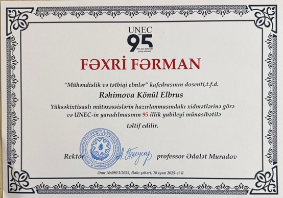 “UNEC Günü” münasibətilə — Universitet həyatında fəal iştirakına görə UNEC rəhbərliyindən təşəkkürnamə.
